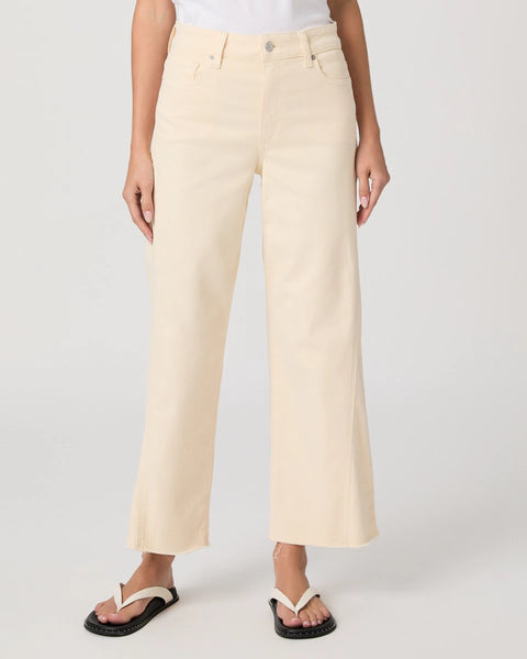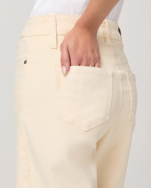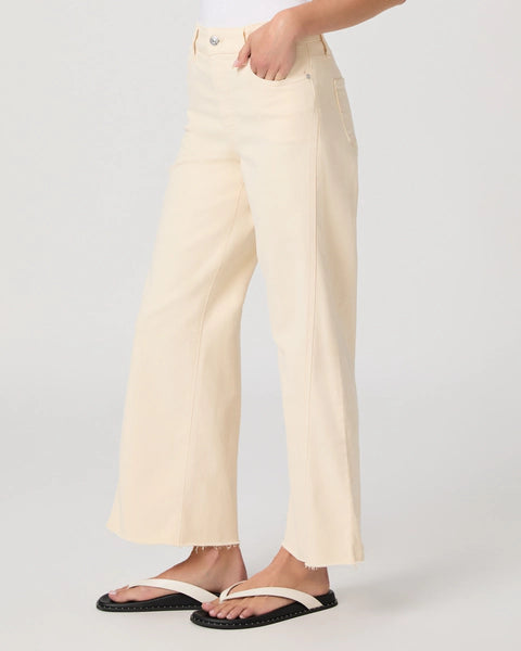 The Anessa comes with a high-waisted wide leg, a slightly relaxed fit and an ankle length inseam. Crafted from comfort stretch denim in butter yellow with twisted outseam panels and a raw hem, this pair has the perfect amount of stretch for all-day wear.
